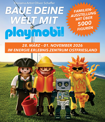 Zum Eröffnungswochenende unserer neuen Sonderausstellung „Baue deine Welt mit PLAYMOBIL“ gewähren wir am 28.+29.03.2026 einen Aktionsrabatt von 50% auf die Eintrittstickets.