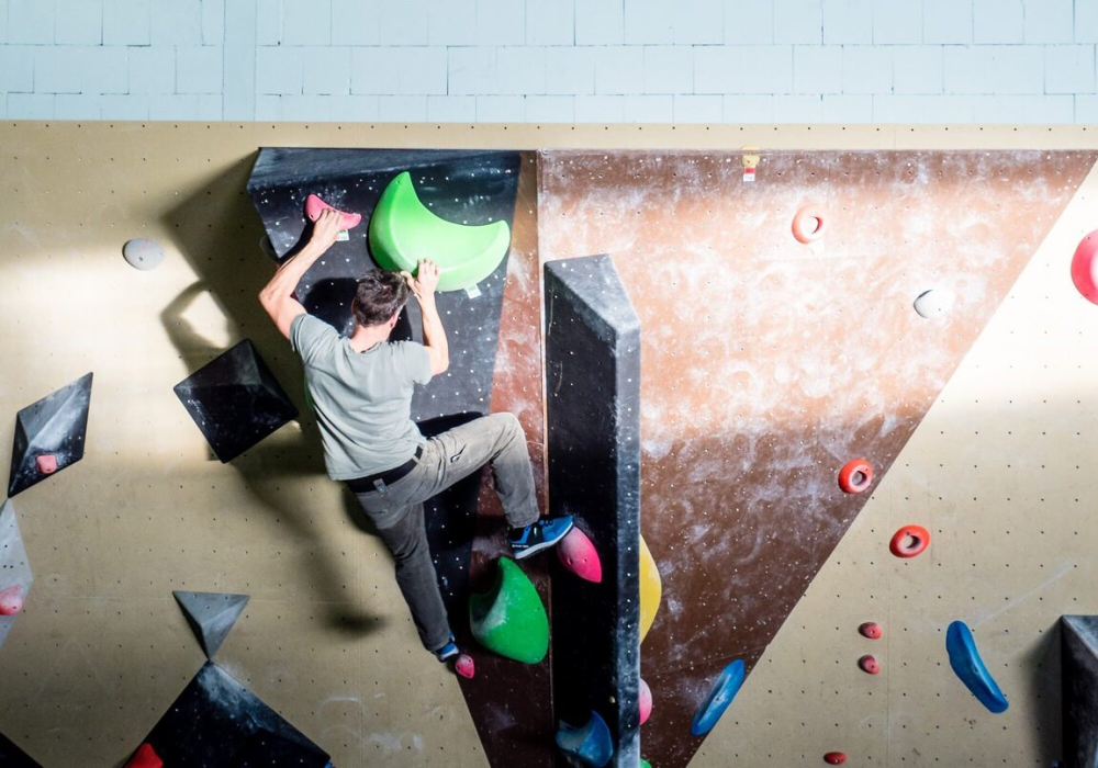 Bouldern bezeichnet das Klettern ohne Seilsicherung in Absprunghöhe. Das bedeutet, dass ihr bei uns im Oldenbloc bis in eine maximale Höhe von 4,5 m frei klettern könnt. Jede*r, der schon mal eine Leiter rauf gestiegen ist, kann im Oldenbloc Bouldern und Klettern. Denn wir haben einfache Boulder für Einsteiger*innen, bis hin zu wirklich sehr schwierigen Bouldern für die, die diesen Sport schon lange ausüben.
