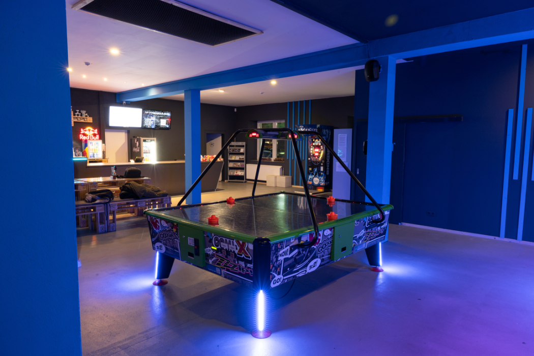 Dazu bieten wir dir eine gemütliche Lounge, die auch zum Verweilen einlädt. Für jeden Geschmack und Anlass ist das passende Getränk dabei! Leckere Softdrinks, Cocktail egal ob mit oder ohne Alkohol oder doch lieber ein frisch gezapftes Bier? Außerdem findest du zwei moderne Billardtische, vier hochmoderne Radikal Darts© Automaten sowie die Möglichkeit für eine Runde Basketball, Airhockey, am Boxautomaten oder im Fahrsimulator.