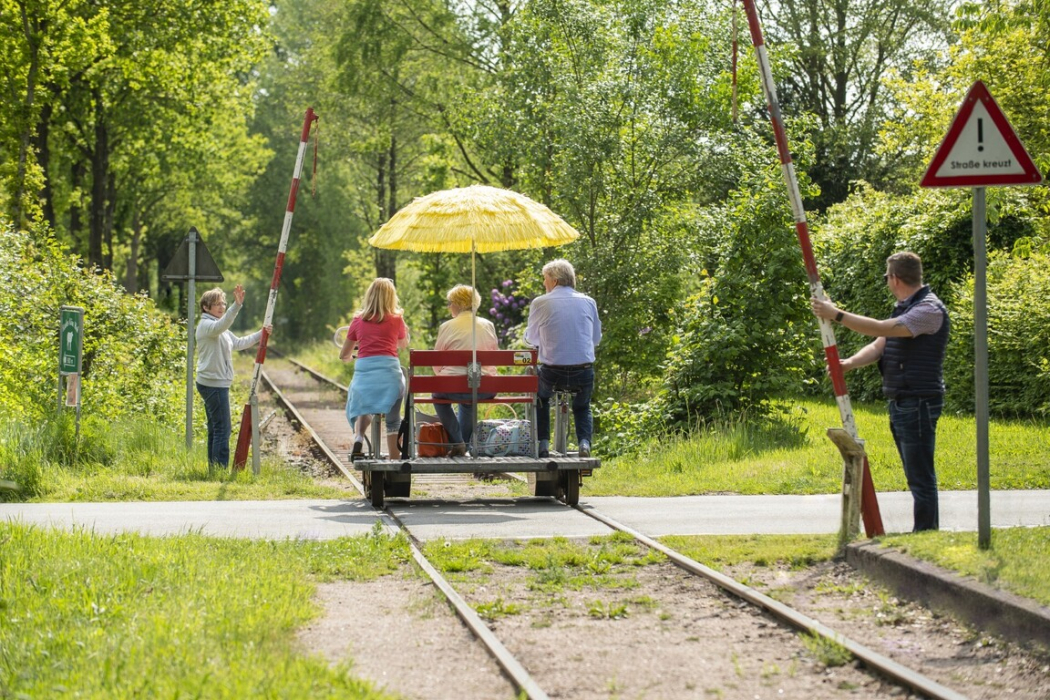Draisine fahren ist ein Vergnügen, das kleine und große Ausflügler begeistert. Mit dem „Fahrrad auf Schienen“ lässt sich die facettenreiche Parklandschaft im Ammerland einmal anders genießen.