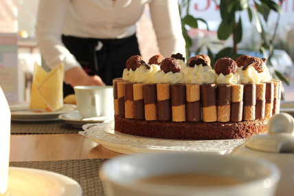 - Kaffee, Tee und Kuchen: zwei Stücke Kuchen (z.B. Obstboden, Käsekuchen, Apfelkuchen, wahlweise vor Ort), Kaffee/Tee satt: 8,50 € p.P.