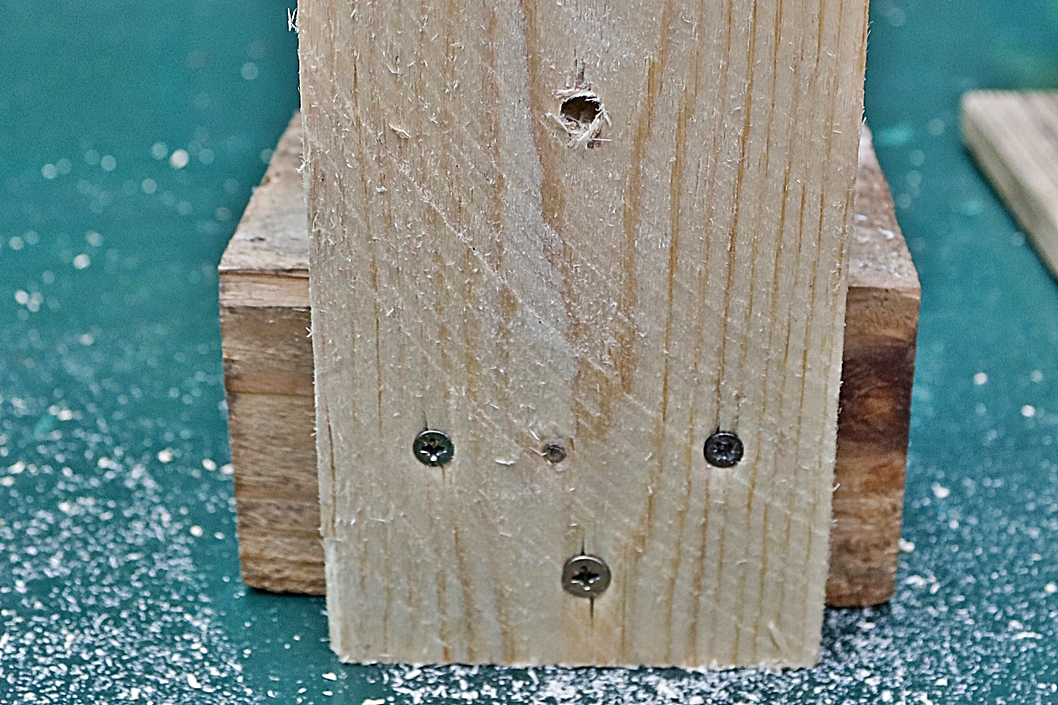 Das einzige Missgeschick, das beim Zusammenfügen der drei Holzteile lauert, ist das Aufreißen der Bretter, beim Verschrauben oder Nageln. Dagegen hilft: vorbohren.